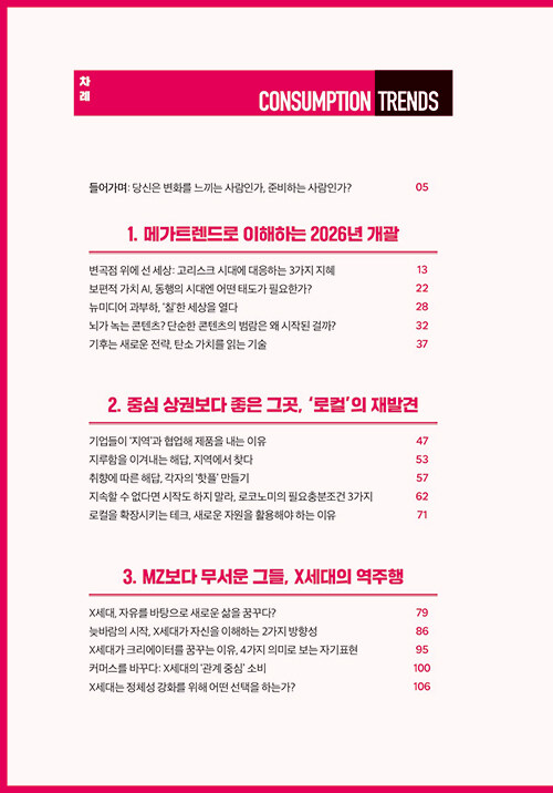 • 요즘 소비 트렌드 2026 - X세대 급부상, 극실용주의, 넥스트 인플루언서, 로코노미, AI 공존 비즈니스 등 마케터의 시각으로 본‘핫’한 소비 트렌드 읽기 검색
