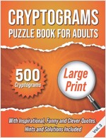 Cryptograms Puzzle Book For Adults: 500 Large Print Cryptograms With Inspirational, Funny and Clever Quotes. Hints and Solutions Included. Volume 1 (Paperback)