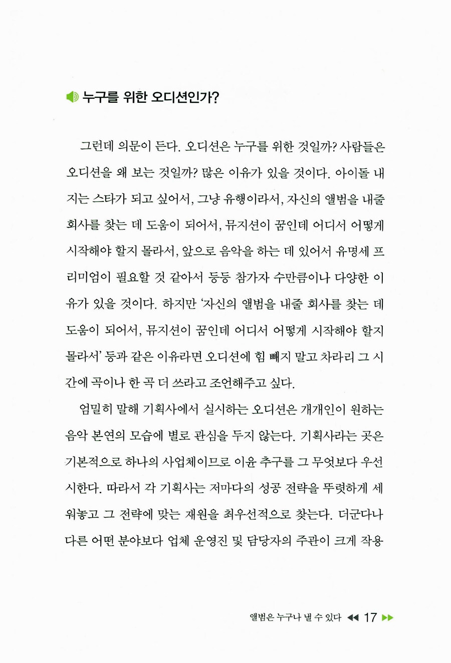 소속사 없이 음반내기 - 오디션에 목매지 마라