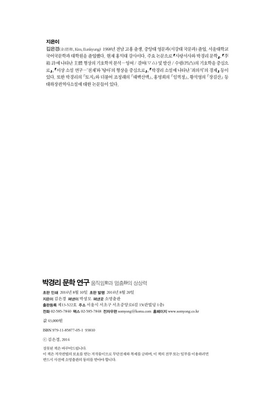 박경리 문학 연구 - 움직임動과 멈춤靜의 상상력