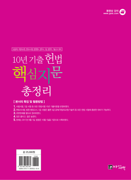 • 2018 10년 기출 헌법 핵심지문 총정리 - 5급공채 / 국립외교원 / 변호사시험 / 법원행시 / 법무사 / 7급 / 법원직 / 기술고시 대비 검색