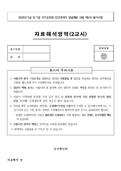 2018 PSAT for 5급 7급 민간경력자 자료해석