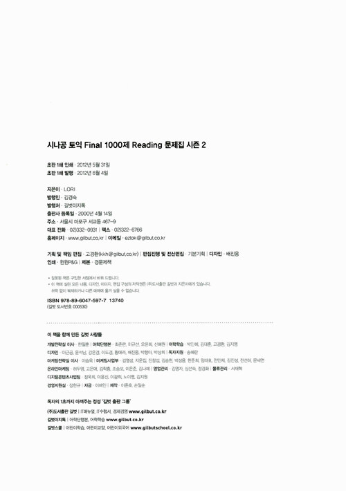 시나공 TOEIC Final 1000제 Reading 문제집 시즌 2(해설집 별매)