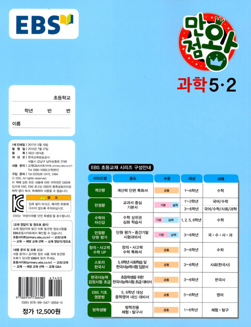 [중고] EBS 초등 기본서 만점왕 과학 5-2 (2017년)