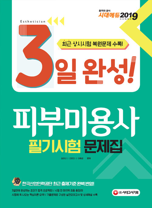 • [중고] 2019 3일 완성 피부미용사 필기시험 문제집 - 최근 상시시험 복원문제 수록! 기출문제로 구성된 실전모의고사 수록! 한국산업인력공단 최근 출제기준 완벽 반영! 상시시험 맞춤교재! 검색 | 2019 3일 완성 시리즈