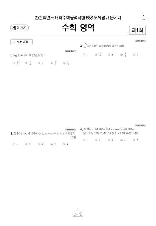 EBS 고난도 시크릿X 봉투모의고사 수학영역 3회분 (2021년)
