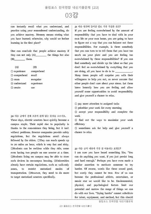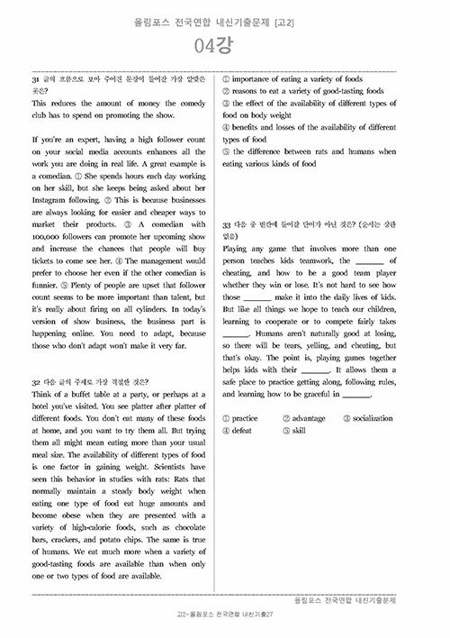 올림포스 전국연합 내신기출 700제 고2 (2024년용) (스프링)