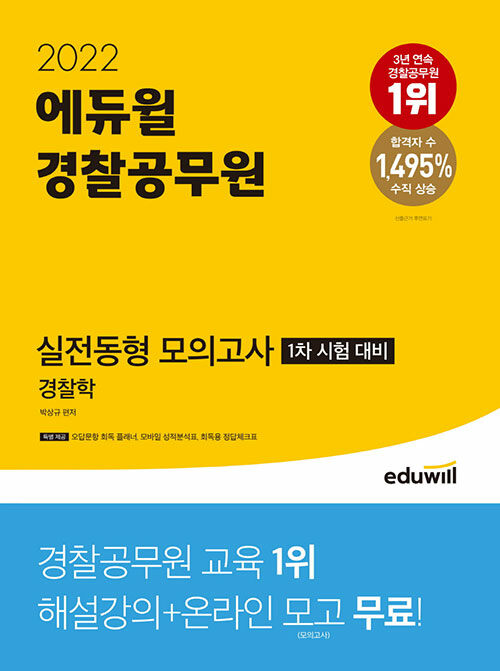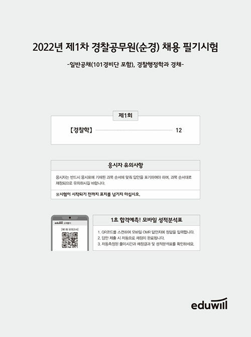 • [중고] 2022 에듀윌 경찰공무원 형사법 실전동형 모의고사(1차 시험 대비) 경찰학 - 오답문항 회독 플래너, 모바일 성적분석표, 회독용 정답체크표 제공! 검색 | 2022 에듀윌 경찰공무원