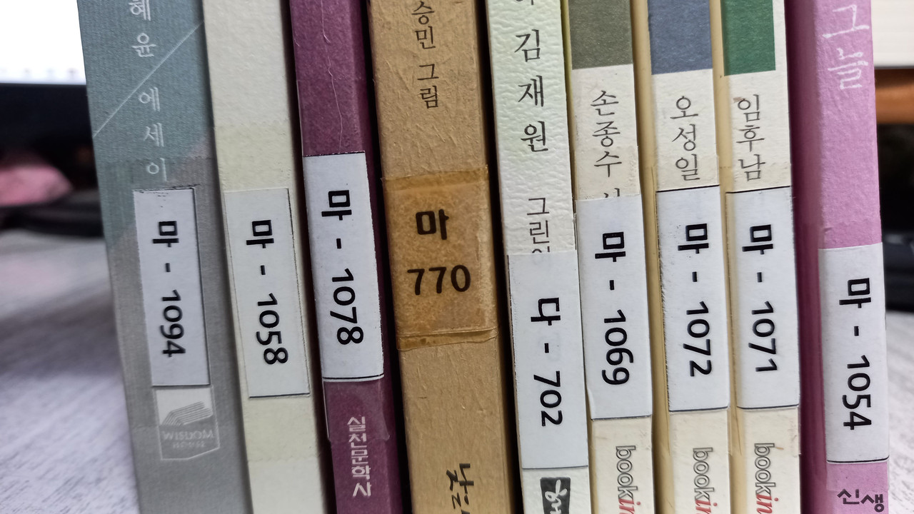 책등에 라벨지(소형) 붙어 있습니다.(사진 참고)