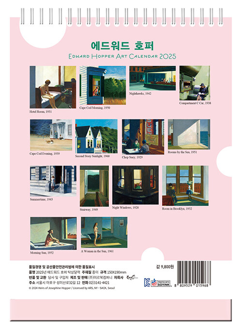 2025년 애드워드 호퍼 고독이 나를 위로한다 탁상달력 (소형)
