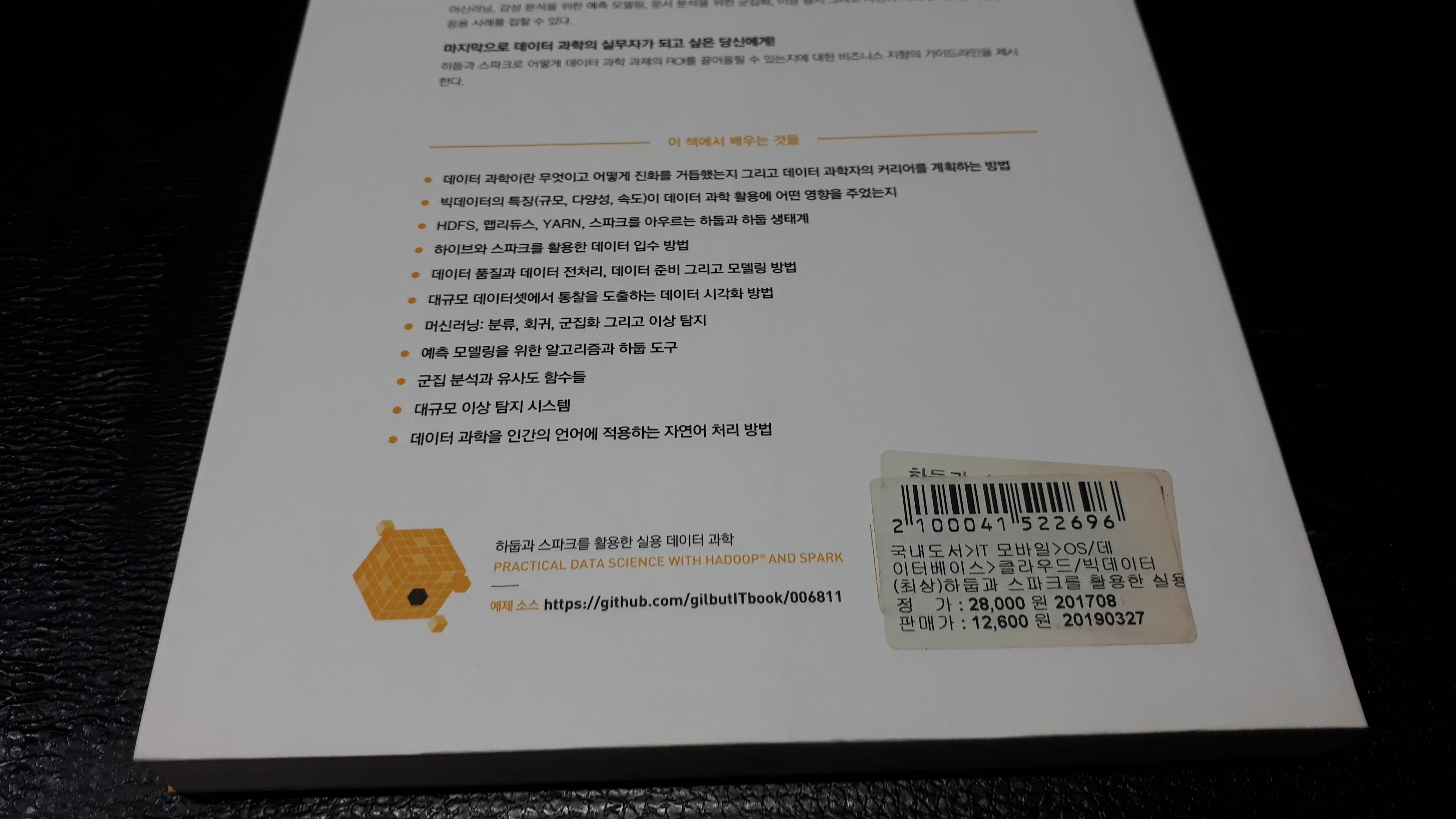 [중고] 하둡과 스파크를 활용한 실용 데이터 과학