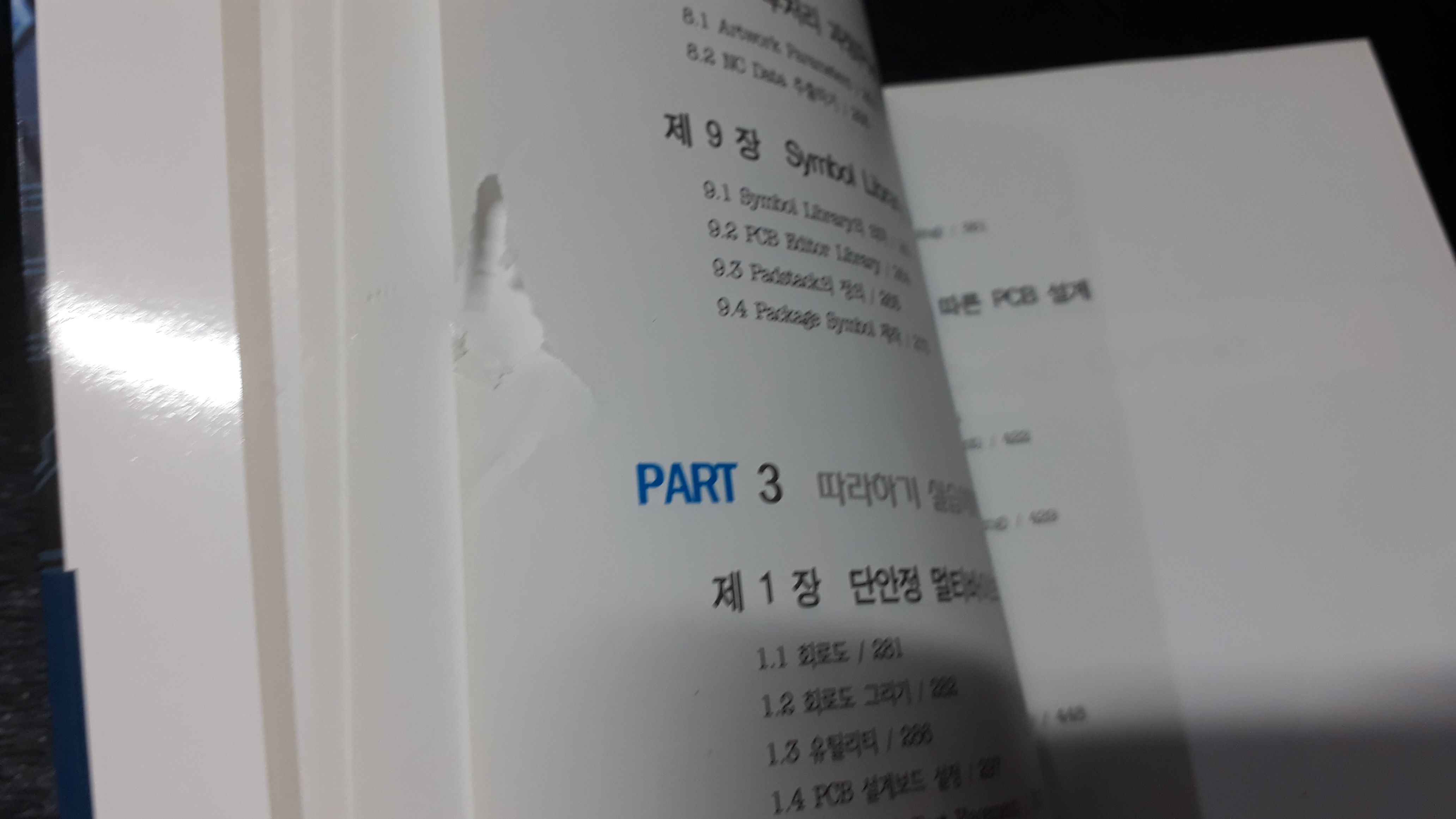 목차 페이지 테두리 훼손/