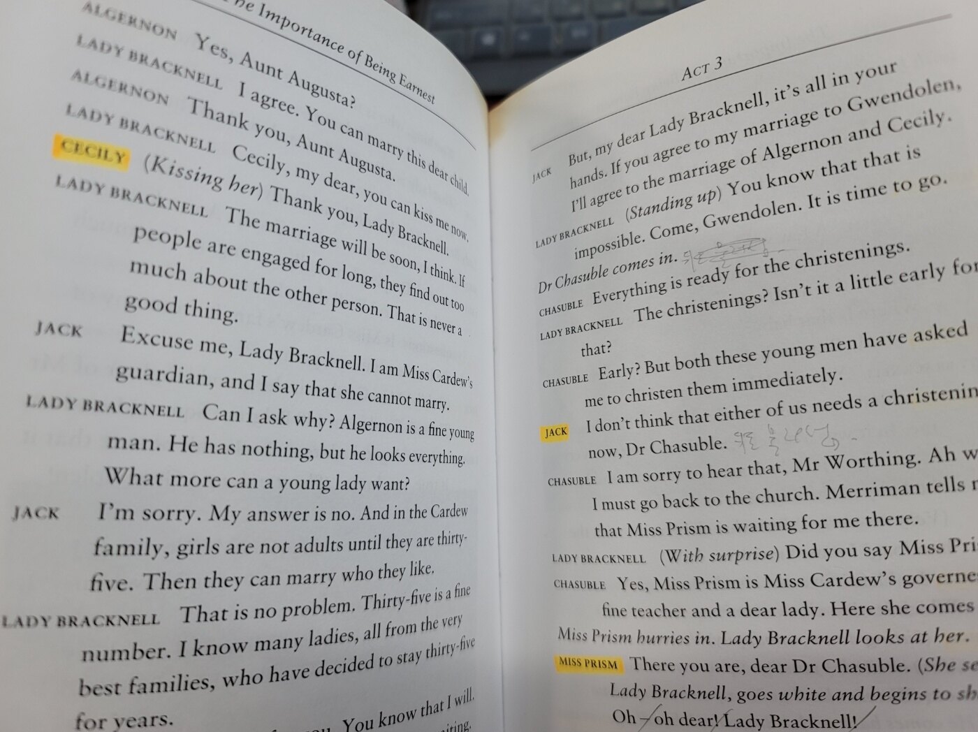 사진과 같은 형광펜 표기 연필 필기가 중반부 부터 여러곳 있습니다