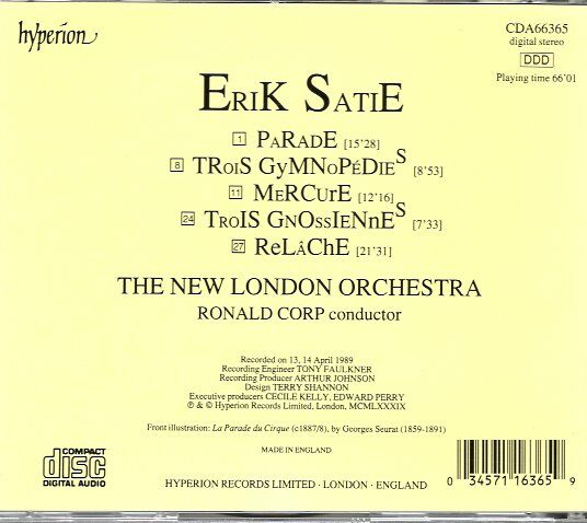 • [중고] [수입] Erik Satie: Parade, Trois Gymnopedies, Mercure, Trois Gnossiennes - The New London Orchestra 검색