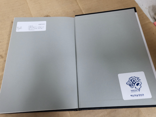 앞표지 + 책등하단 + 앞간지 + 뒷간지 각각 도서관 스티커 있음
