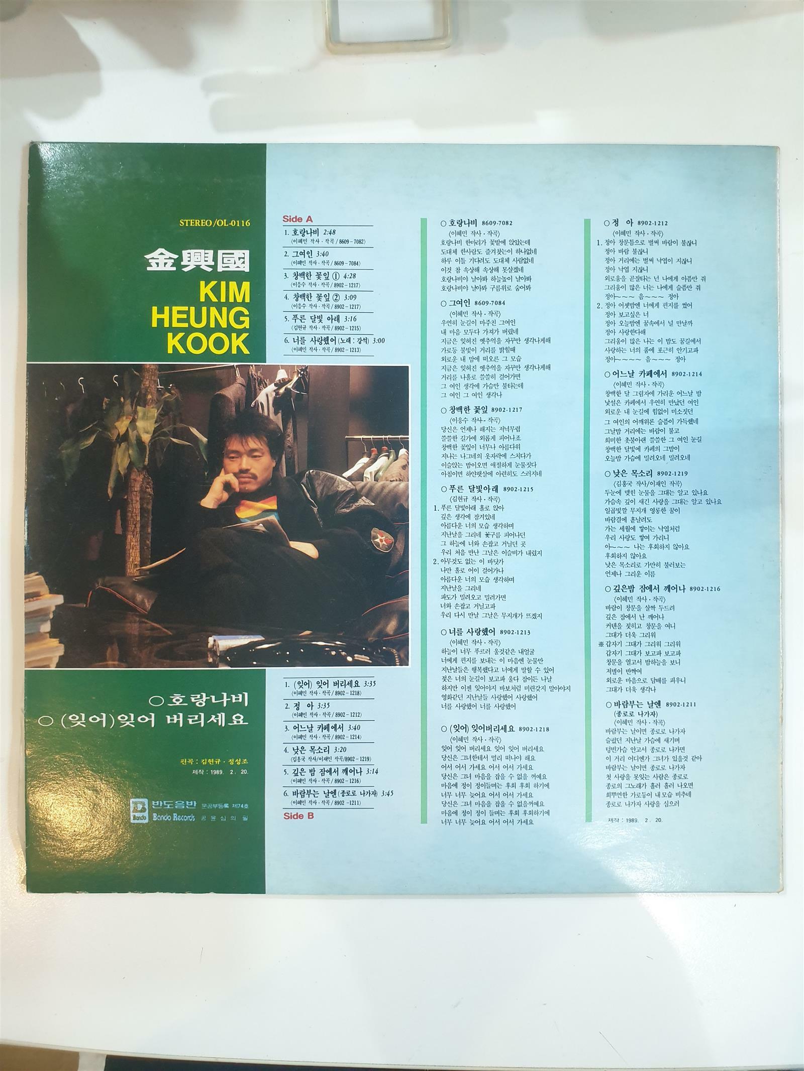 • [중고] [개봉-LP] 김흥국 - 호랑나비, 잊어 버리세요 STEREO/ OL-0116 검색