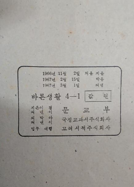 1960년대 문교부 국민학교 교과서 -- 바른생활 4-1 (국정교과서 1967년)