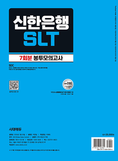2026 최신판 시대에듀 신한은행 SLT 필기시험 봉투모의고사 7회분