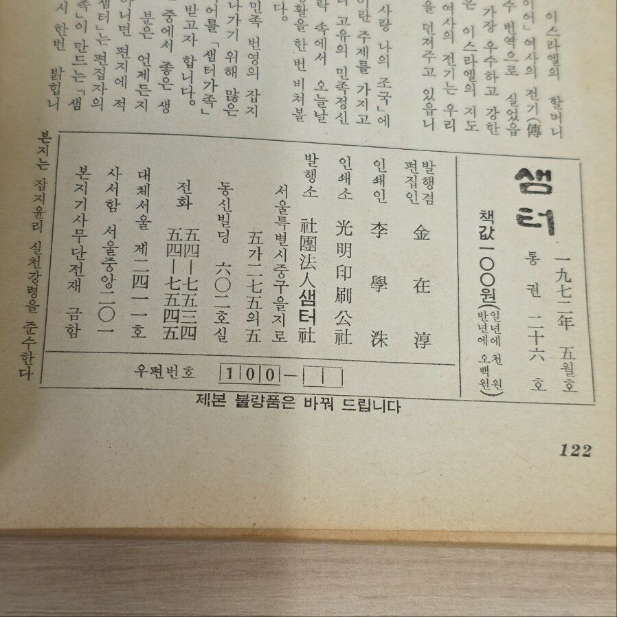 • [중고] 샘터사) 샘터 통권 제26호, 1972년 5월호 (전1권, 절판본) 실사진 및 글 참고 검색