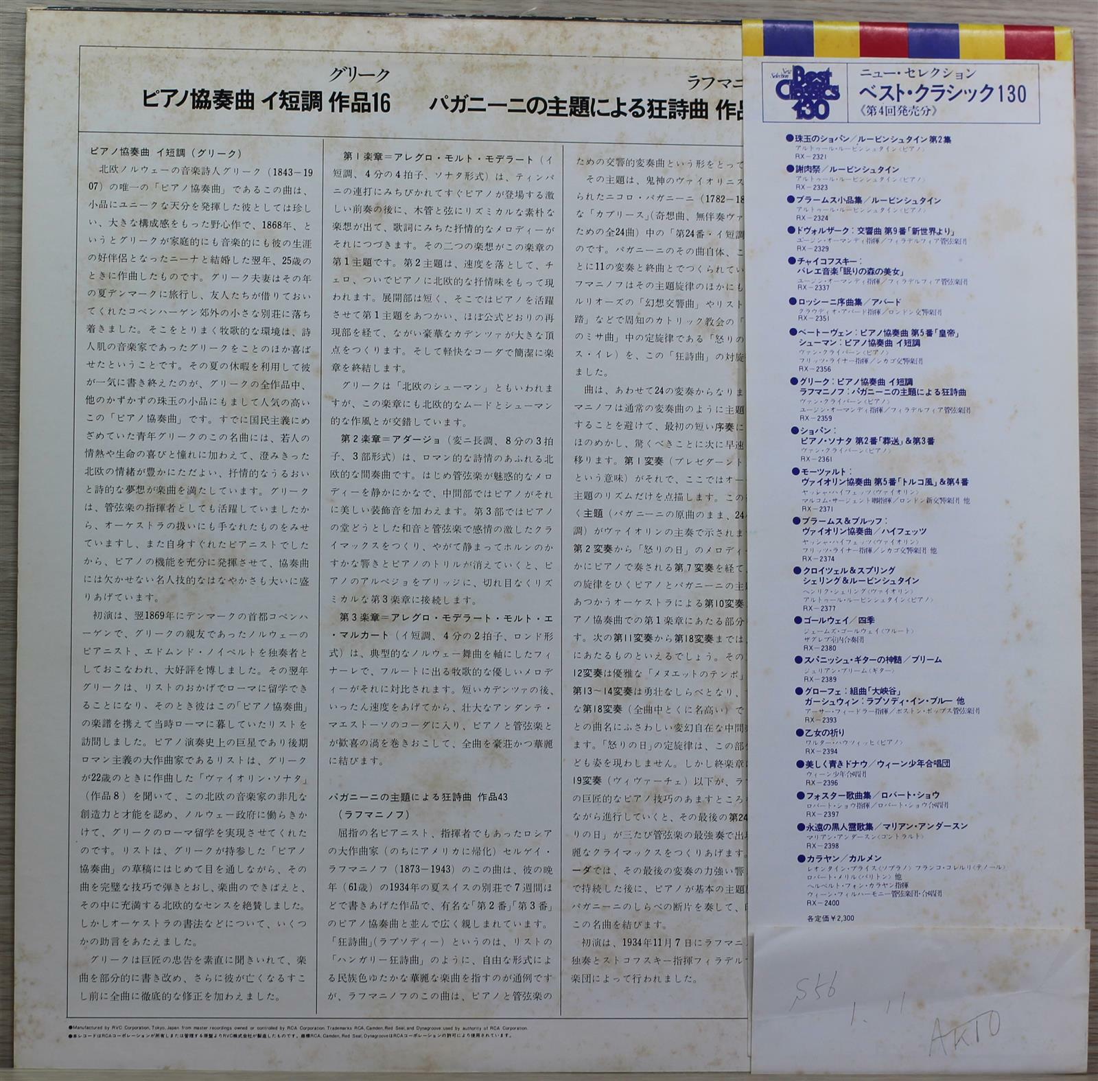 Label : RCA Records Red Seal RX-2359. 1979 - Japan