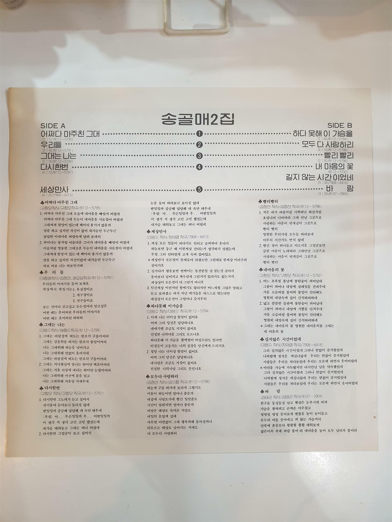 자켓-상급 / 디스크-최상급 / 가사지 있음
