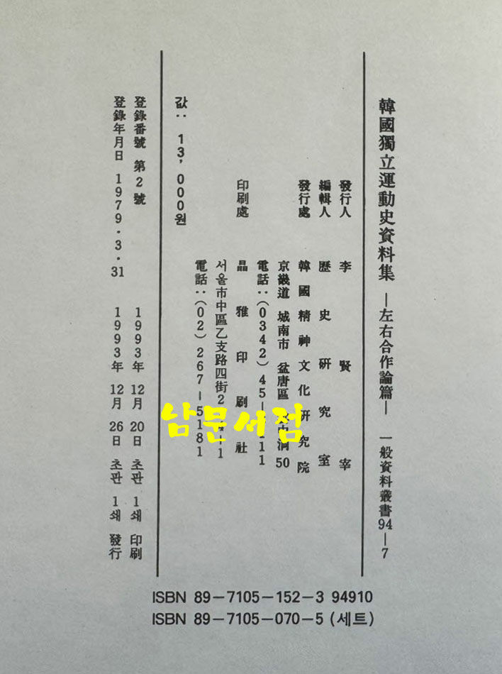 [중고] 한국독립운동사자료집:좌우합작론편