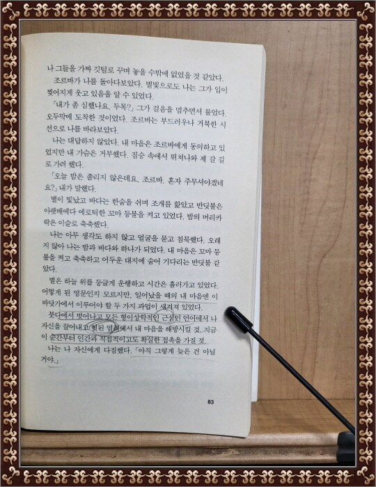 인생. 그것은 본디 ‘고통’이라던 선배들의 말을 거절할 수 없었을 때 그리스인 조르바가 말을 걸었다. 우연히 온 세상, 행복하게 사는 게 남는 장사지 싶었을 때 그리스인 조르바가 행복의 태도를 가르쳐 주었다. 그것은 죽음도 아니고 회피도 아니고 인내도 아니었다. 느끼는 대로, 현재를 ‘점’이라고 생각하며 기뻐하고, 가끔 그 점들의 연결이 그린 그림을 바라보며 웃기도 하고, 다시 현재를 기뻐하라고. 인생 선배 조르바가 가르쳐준 가장 즐거운 태도는 이것이었다. 무엇하나 마음먹은 대로 되는 법이 없는 인생, 그럼에도 갈망하며 애쓰던 일이 무너졌을 때는 춤을 추라고. 그래서 오늘도 나는 춤을 춘다. 멋지거나 우스꽝스러운 춤을 흉내도 내면서 춤을 춘다. 깔깔대며 춤추다 보니 절망이란 놈이 끼어들 틈이 없더라고.