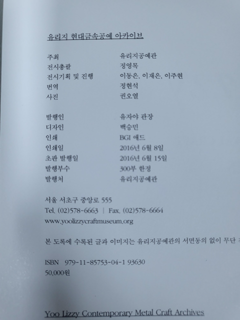 • [중고] Yoo Lizzy Contemporary Metal Craft ARCHIVES 유리지 현대금속공예 아카이브 유리지공예관 2016 초판 [300부한정본] 검색