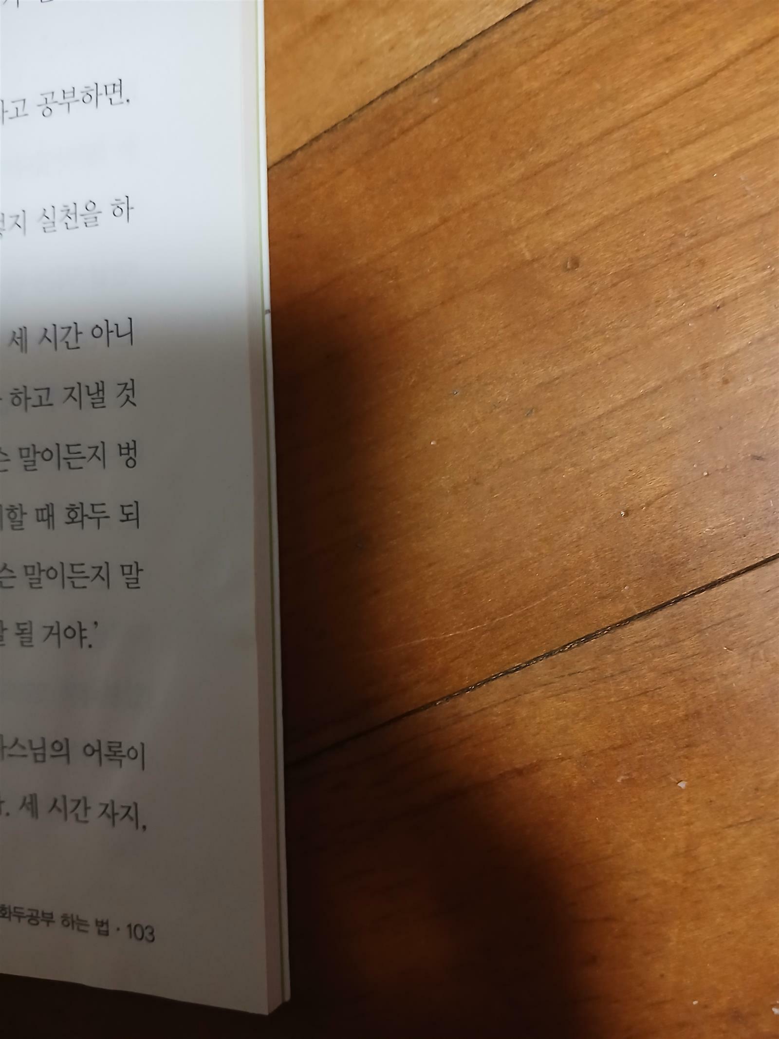 책 옆면 쪽에 땀 때문에 다섯 장 정도 약간 운 흔적이 있습니다.