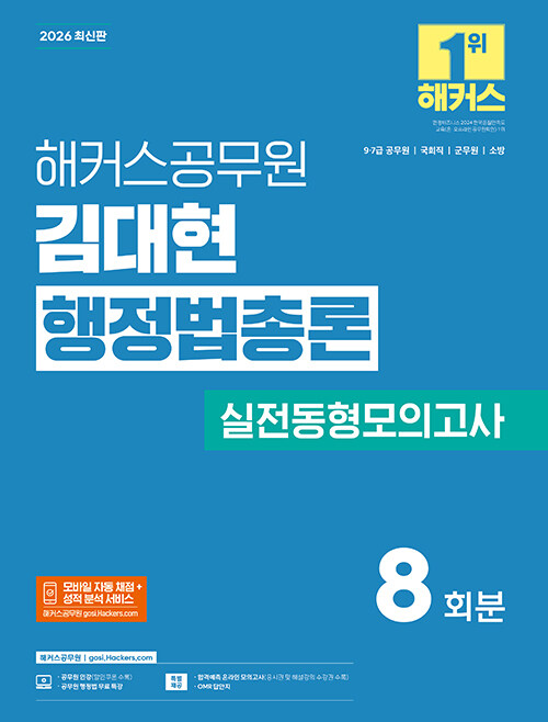 • 2026 해커스공무원 김대현 행정법총론 실전동형모의고사 (9, 7급 공무원) - 9, 7급 공무원, 국회직, 군무원, 소방 시험 대비 | 실전동형모의고사 8회분 수록 | 행정법 무료 특강 제공 | 합격예측 온라인 모의고사 응시권 제공 | 모바일 자동 채점+성적 분석 서비스 제공 | OMR 답안지 제공 검색