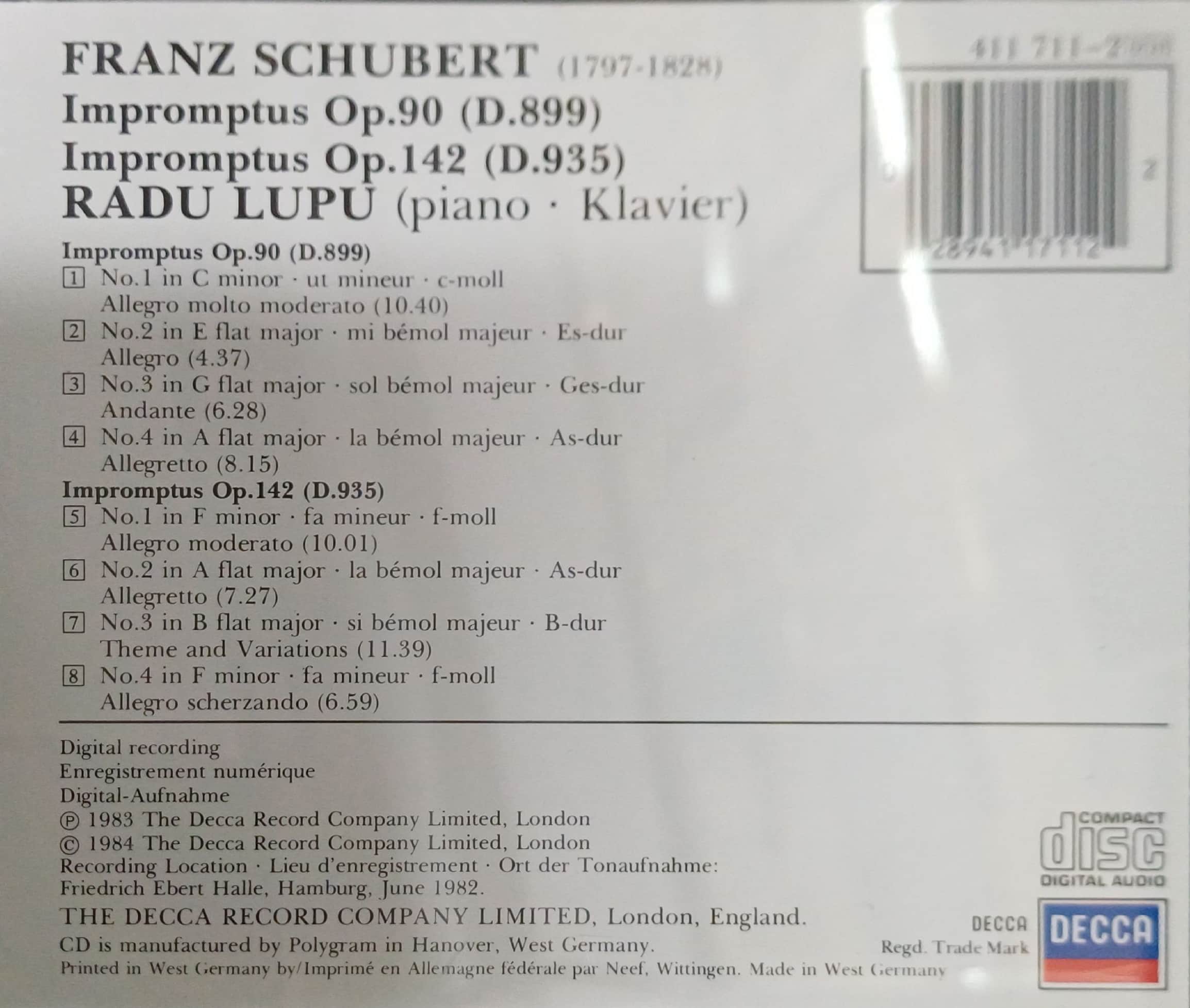 [중고] 라두 루푸 radu lupu 슈베르트 즉흥곡 [수입 CD]