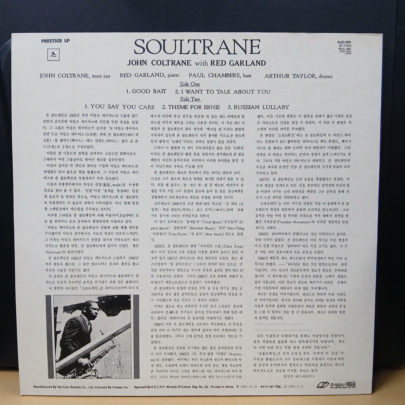 • [중고] [LP] John Coltrane 존 콜트레인 - Soultrane 검색