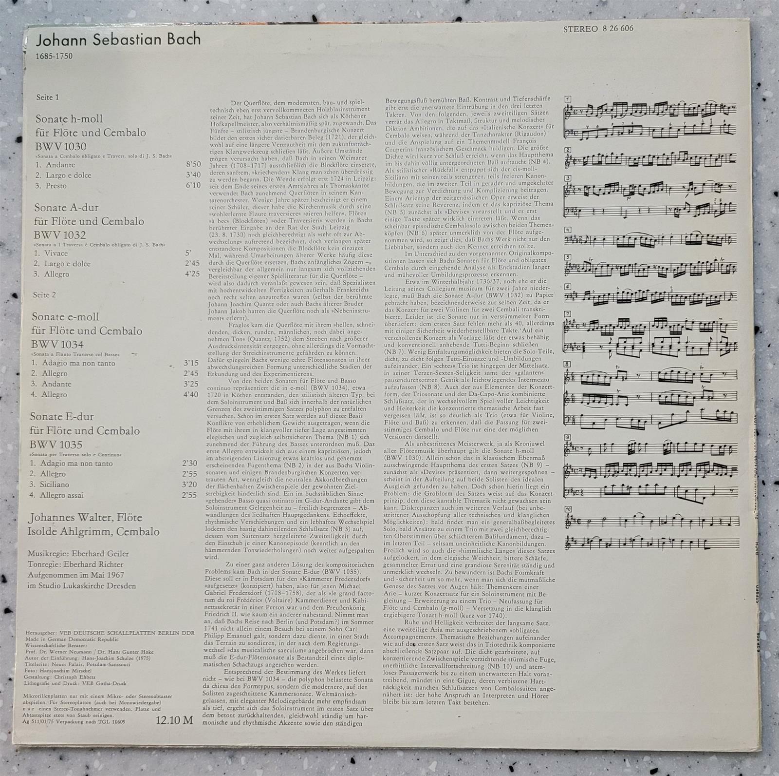 [중고] [수입][LP] Johannes Walter, Isolde Ahlgrimm - 바흐 : 플루트와 쳄발로를 위한 소나타집 (구 동독)(에테르나)(초반)