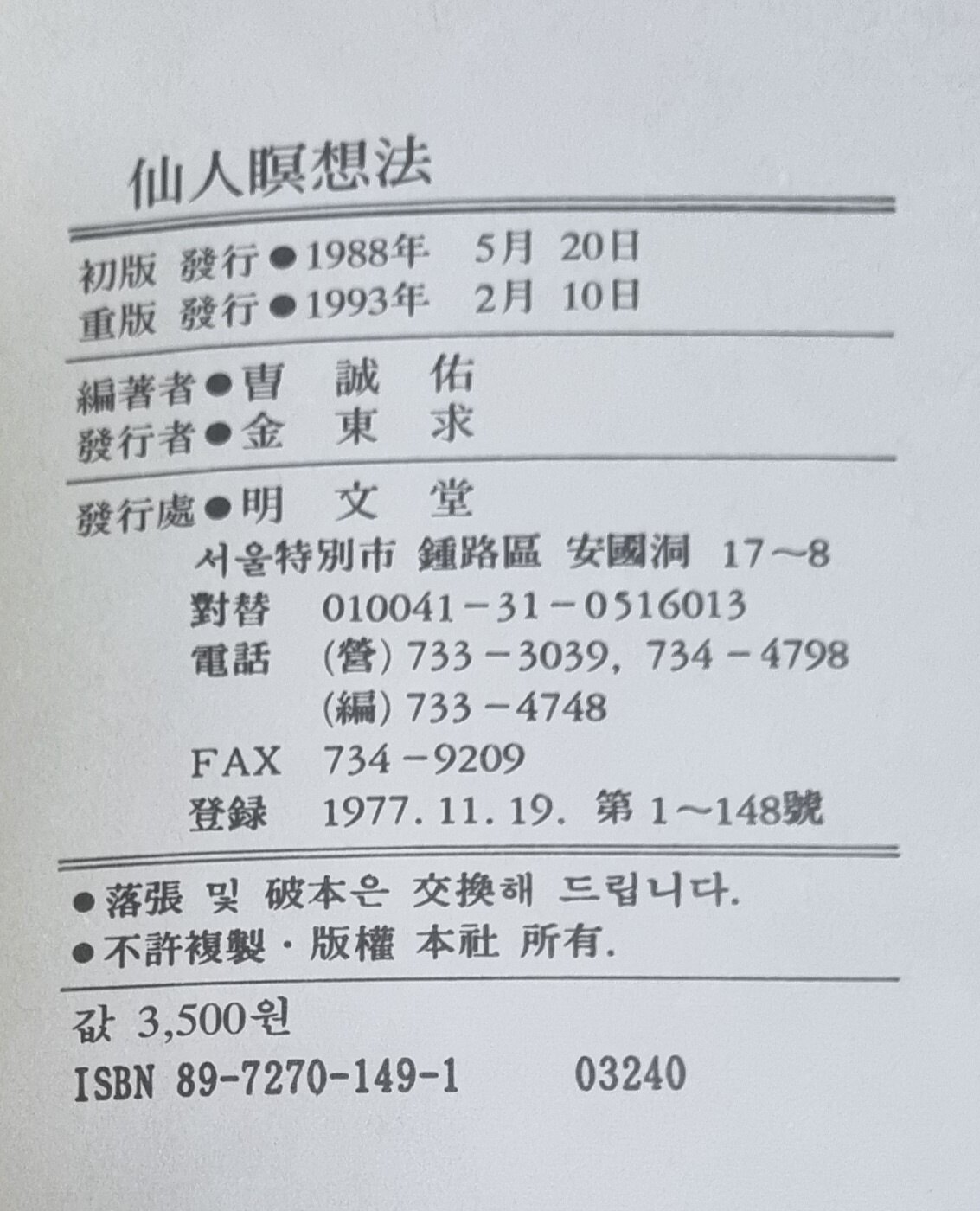 1993년 2월 10일 발행된 중판 도서입니다.