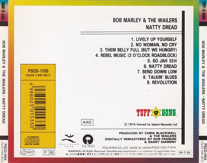 1991.7.25 Tuff Gong (PSCD-1105) 제조국Japan ㅣ 상태:최상급