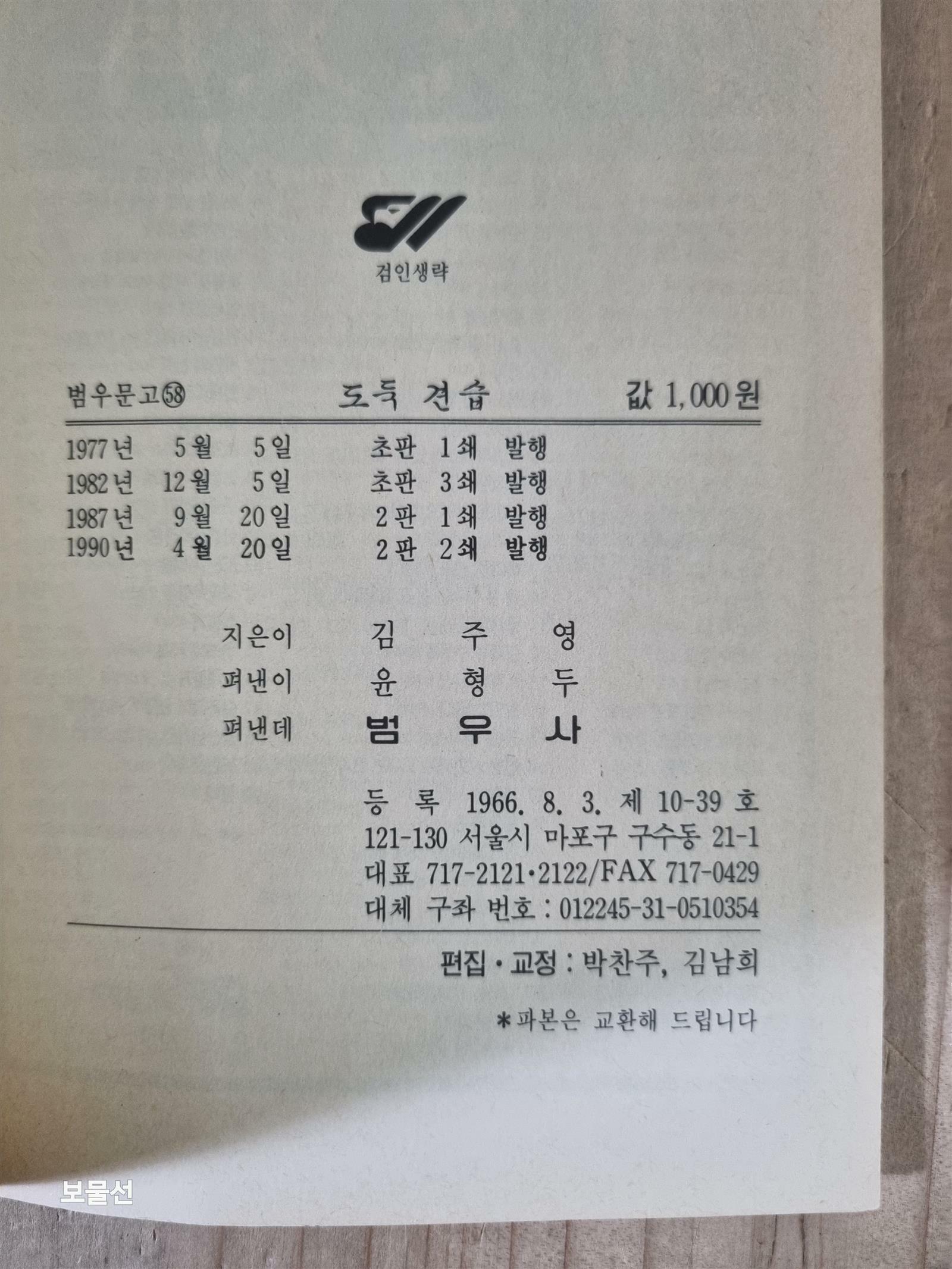 [중고] 도둑 견습 - (1990년, 범우사)