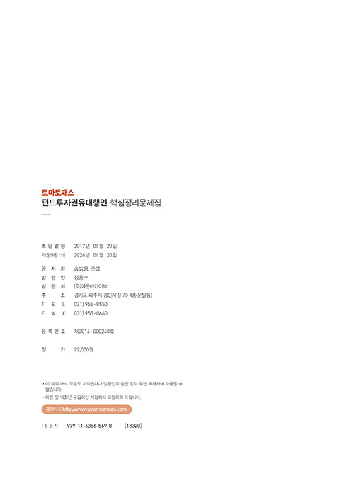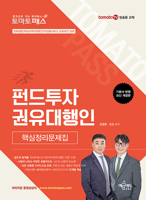 • 토마토패스 펀드투자권유대행인 핵심정리문제집 - 실전모의고사 2회분 / 토마토패스 동영상 강의 교재 검색