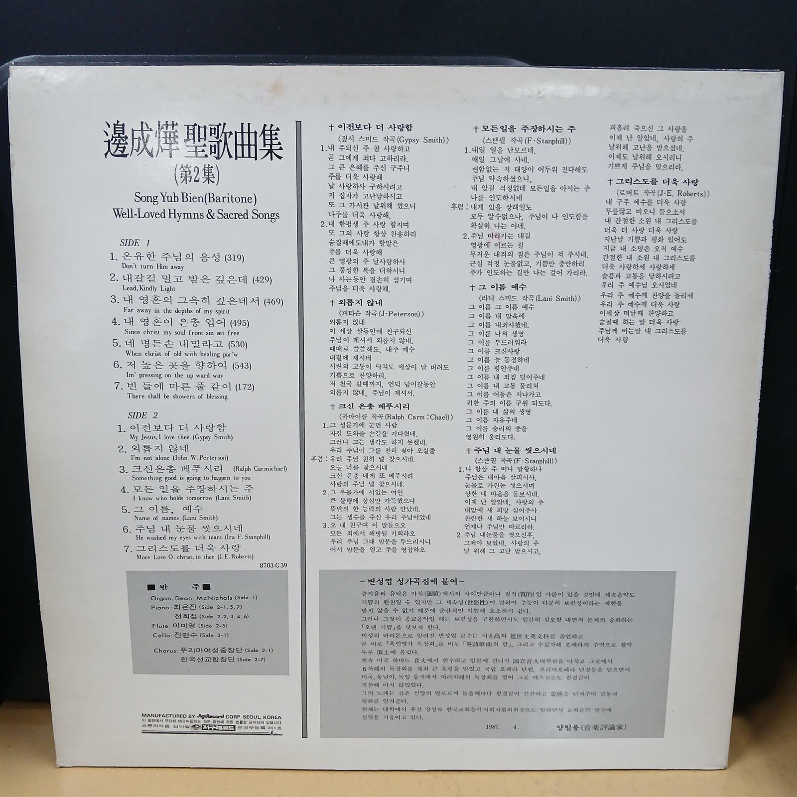 • [중고] [LP] 바리톤 변성엽의 <성가곡집 제2집(Well-Loved Hymns & Sacred Songs Vol.2)> 검색