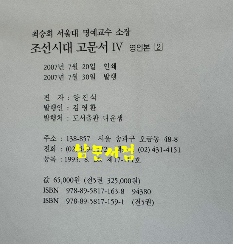 • [중고] 최승희 서울대 명예교수 소장 조선시대 고문서 4 영인본 2 / 2007년 초판 / 748페이지 검색