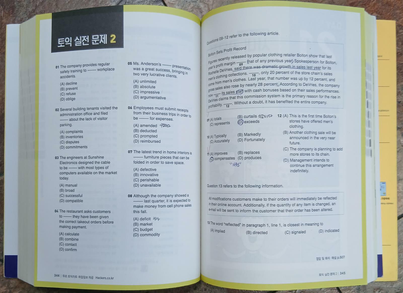 전체적으로 형광펜 줄 및 약간의 펜 표기