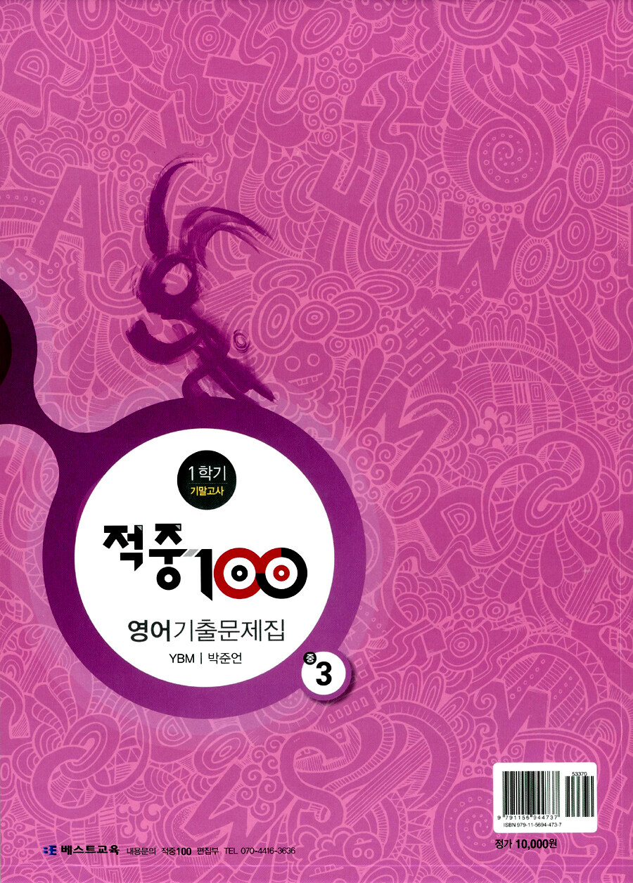 적중 100 1학기 기말고사 영어 기출문제집 중3 (YBM 박준언) (2015년)