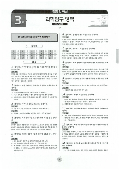 이유있는 Choice 수능.평가원.교육청 6년간 모의고사 지구과학 1 (2016년)