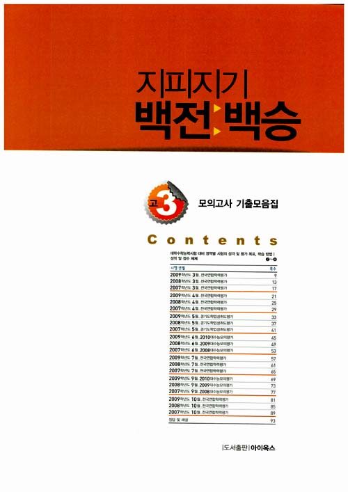 <2011 지피지기 백전 백승 모의고사 기출모음집>시리즈 중 하나인 『고3 사탐영역 정치』는 2011 수능을 대비한 최신판으로, 평가원과 전국 연합 시.도 학력평가 기출문제와 최근 3년 동안 시행된 모의고사를 모두 수록하고 수능 시험의 성격 및 평가 목표, 학습 방법, 성적 및 점수 체제를 수록하여 문제풀이 능력을 향상시키고 수능에 대비할 수 있도록 하였다.