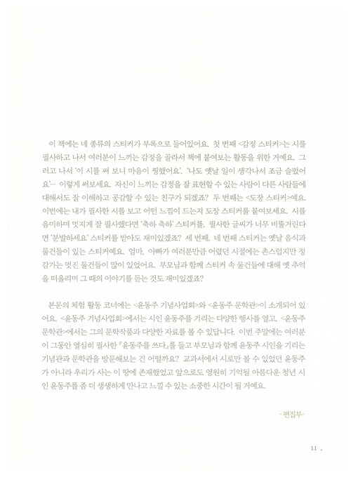 윤동주 탄생 100주년 기념 사진 엽서 3종(별책부록) + 활동스티커 4종(책속부록)