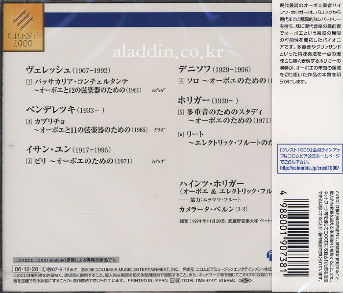 [수입] 현대 오보에의 영역 - 베레쉬, 펜데레츠키 & 윤이상 외