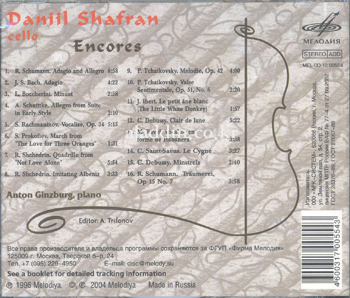 [수입] 대닐 샤프란 - 앙코르, 리사이틀 앨범
