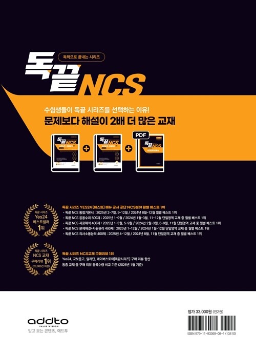• 독끝 NCS 수리능력·자료해석 400제: 공기업 NCS & 대기업 인적성 & PSAT 대비 - 전2권 - 한국전력공사·한국철도공사·한국도로공사·한국가스공사·수자원공사·한국수력원자력·한전KPS·국민건강보험공단·근로복지공단·국민연금공단·인천국제공항공사·한국토지주택공사·중소벤처기업진흥공단·농어촌공사·한국조폐공사·한국관광공사·한국공항공사·강원랜드·코레일테크·한국남동발전·한국서부발 검색 | 독학으로 끝내는 시리즈