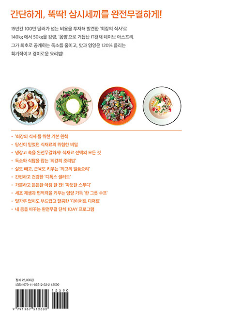 든든한 한 끼부터 샐러드, 간식, 음료까지 어른, 아이 할 것 없이 누구나 즐겁게 즐길 수 있는 식단으로 짜임새 있게 구성되어 있어 식상할 틈 없이, 먹는다는 죄책감 없이 가볍고 즐거운 마음으로, 각자 자신의 상황에 맞게 응용하면서 음식을 즐길 수 있도록 도와준다. 이와 더불어 초심자를 위한 기본 원칙부터 독소와 식탐을 잡는 조리법과 냉장고 속을 완전무결하게 채우는 식재료 선택의 노하우까지 자세하게 담아 누구나 최강의 식사를 경험할 수 있도록 했다.
